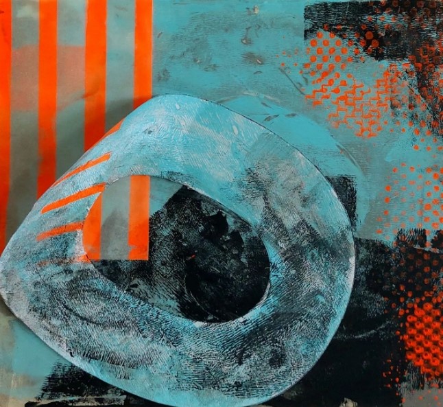 “Tectonic Pulse” is een krachtige mixed media monoprint waarin ik de spanning tussen structuur en chaos onderzoek. Heldere oranje strepen, rauwe zwarte vlakken en een organisch, blauw getextureerde vorm botsen en versmelten op het papier. Het werk roept een gevoel van verschuiving, onderhuidse druk en visuele pulsaties op. Met een dynamische kleurgebruik en gelaagde technieken biedt deze monoprint een expressieve en moderne toevoeging aan elke kunstcollectie. Uniek, handgemaakt en doordrenkt met energie.